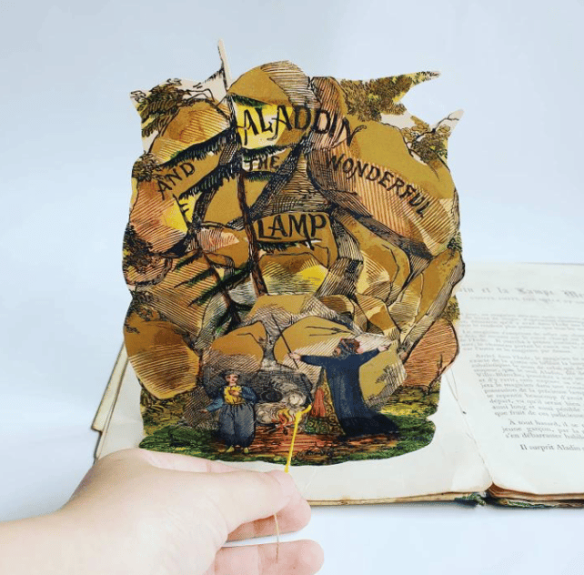 Aladdin et la lampe magique. À cette époque on tire avec une ficelle pour activer le mécanisme du pliage.