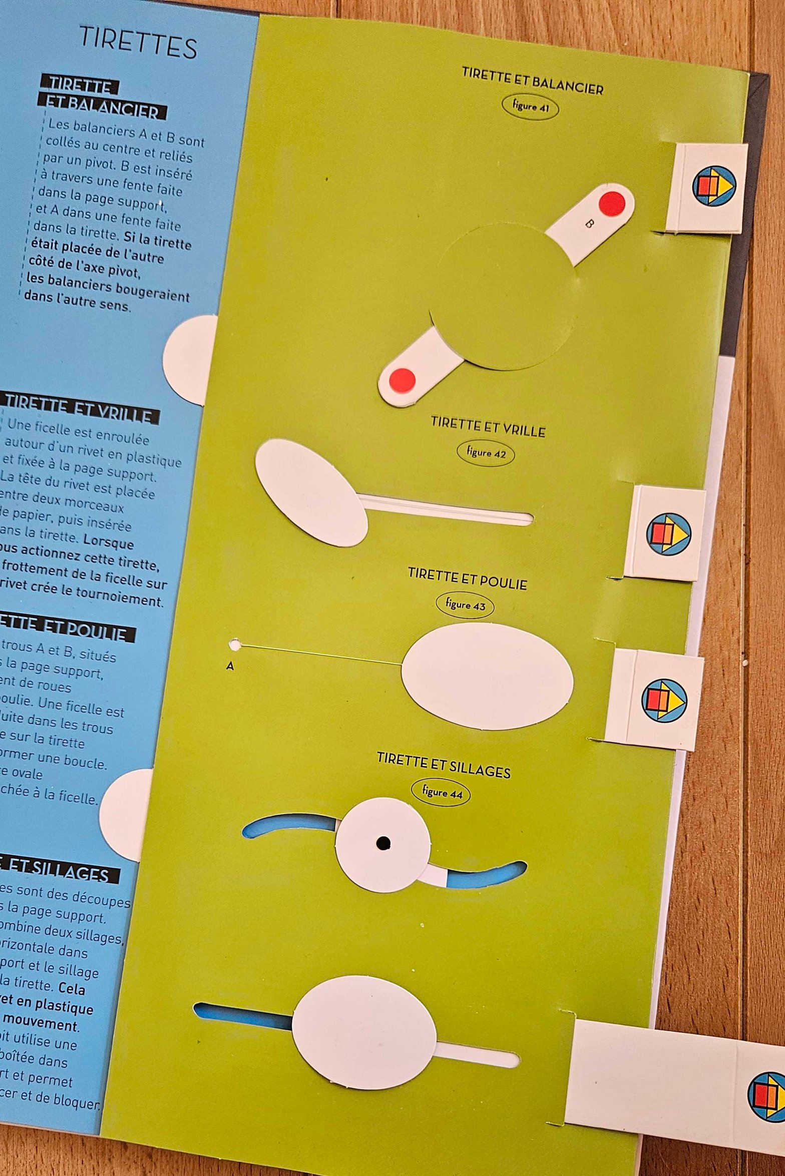 Tirette : comme son nom l’indique, on tire sur un élément (indiqué sur le livre avec une flèche le plus généralement) qui en laisse apparaître un autre.